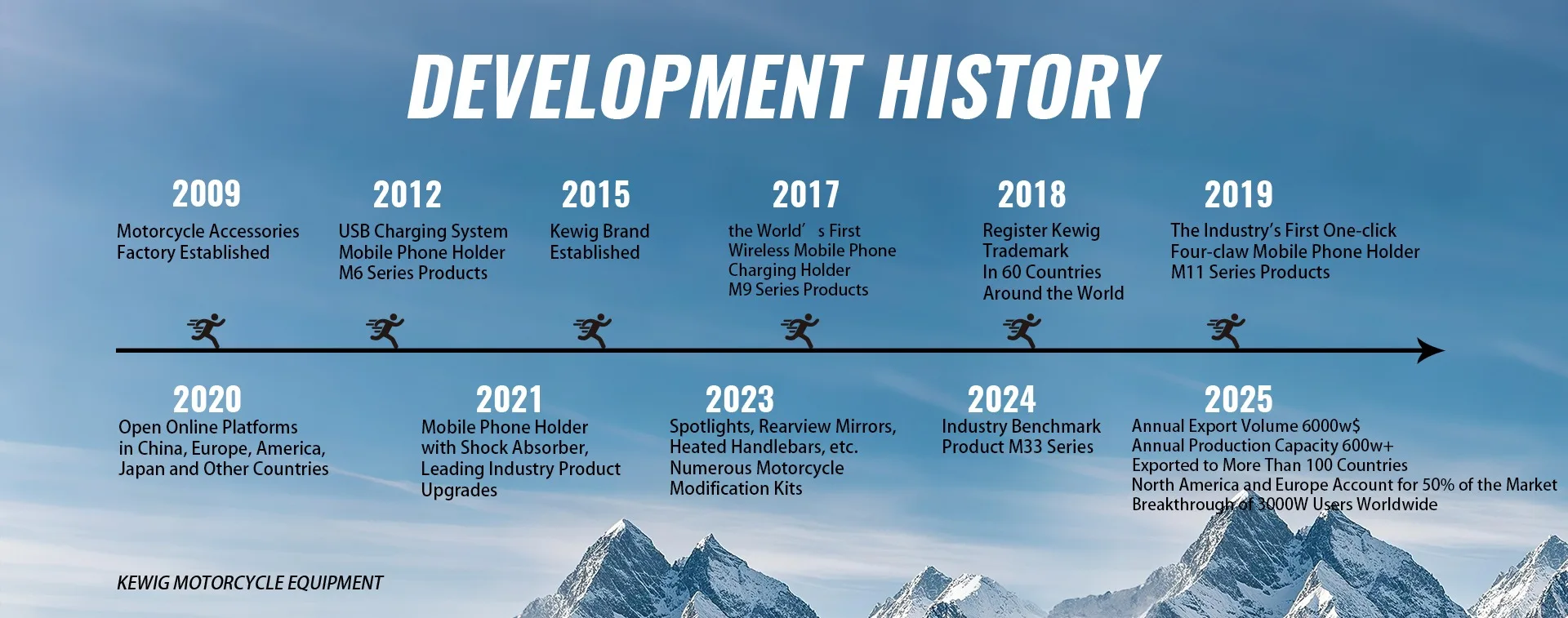 • Industry leader: a leading motorcycle accessories company for 15 years, with an independent and complete industrial chain, and its own brand Kewig.